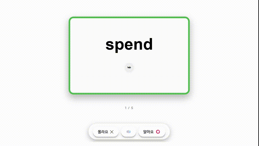 학습이 끝난 뒤에는 ‘몰라요’로 체크한 단어만 다시 반복해서 보여주기 때문에,